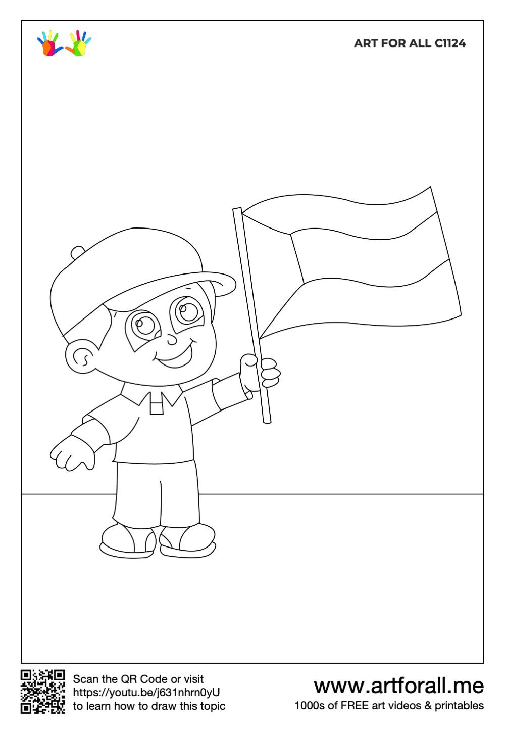 How to draw Kuwait National Day - boy with flag